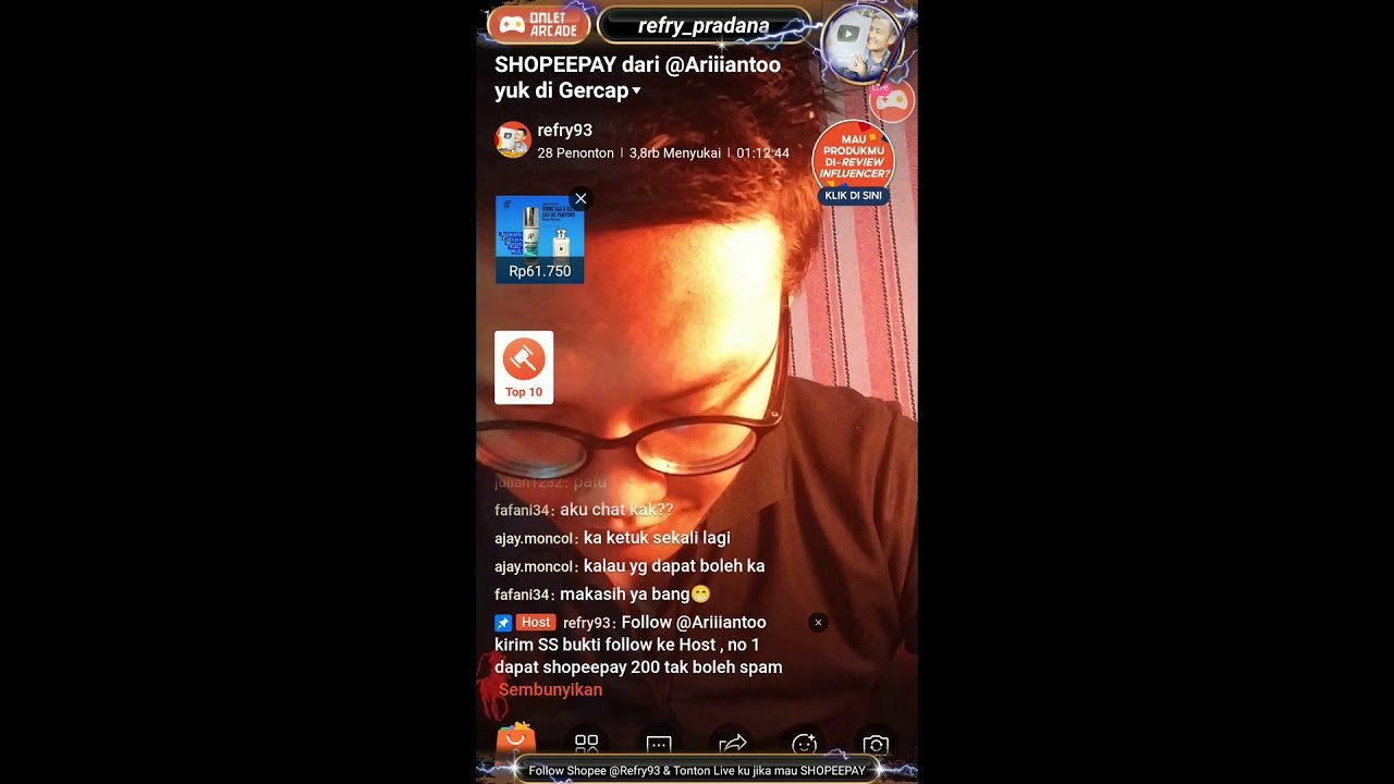 Live Shopee @Refry93 Bagi2 SHOPEEPAY yuk gabung